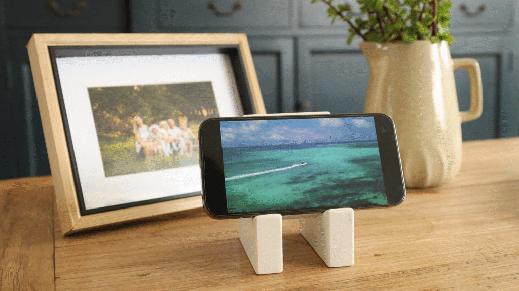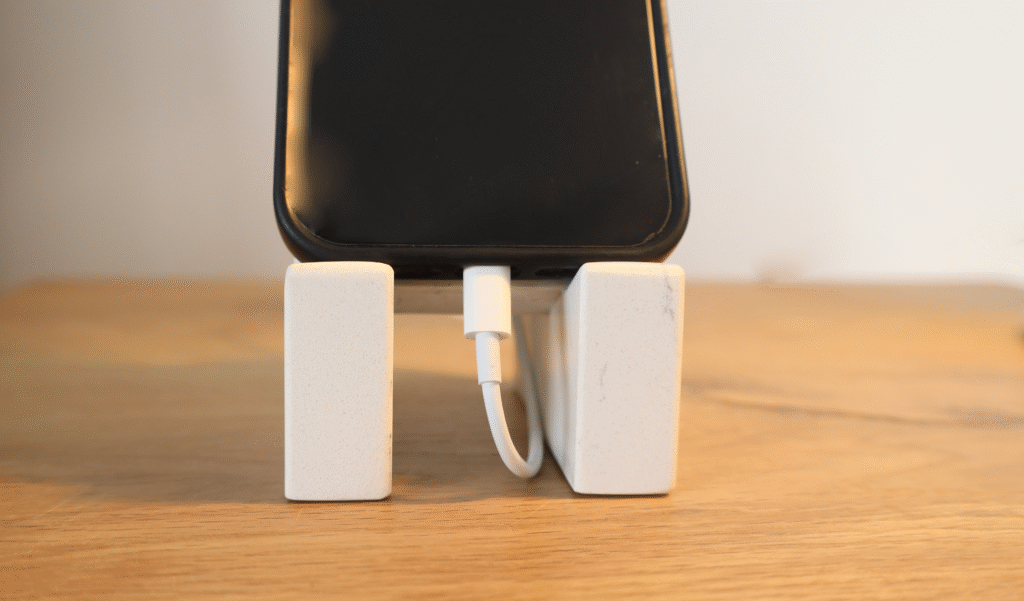 This thing is a beast. Talk about a paperweight. For some reason I didn’t expect it to actually be stone… But that’s neither here nor there. This is a great charging stand to keep your phone in portrait mode at an angle. It’s even pretty useful for games and video calling since the weight of the base isn’t going to tip over just by putting a larger phone on it. 10/10.